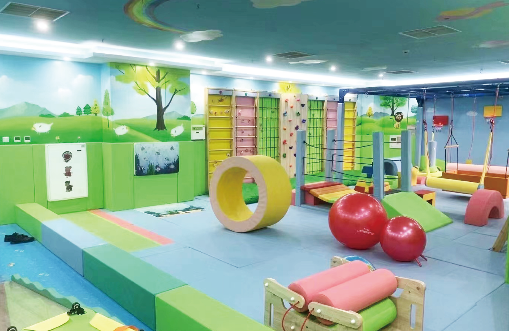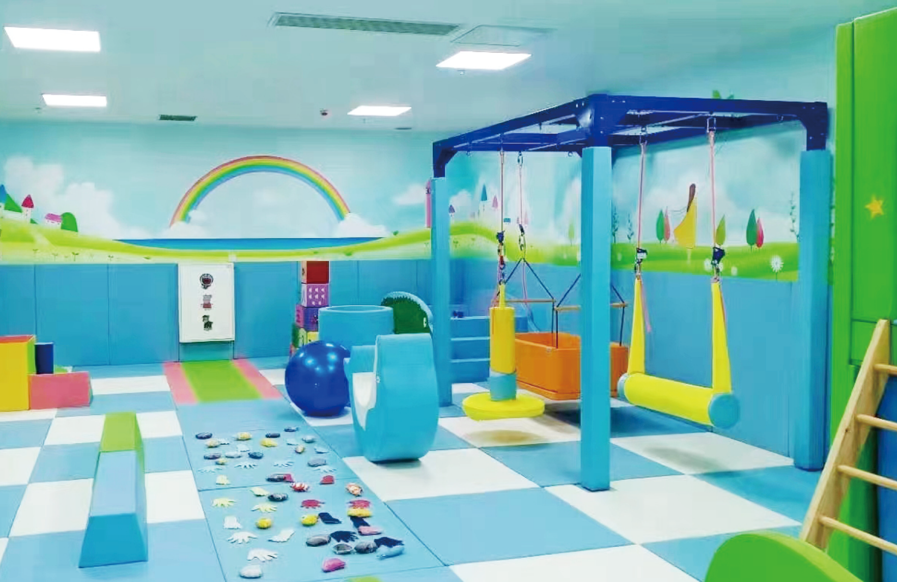 感統訓練教室是基于學生的神經需要,引導對感覺刺激作適當反應的訓練,提供前庭(重力與運動)本體感覺(肌肉與感覺)及觸覺等刺激的全身運動,改善腦處理感覺資訊與組織,并構成感覺資訊。促進幼兒聽覺、視覺、觸覺、本體感覺、前庭功能知覺的發展,提高感覺統合能力,促進幼兒身體正常發育和機能協調地發展,提高幼兒力量、靈敏、平衡等身體素質。