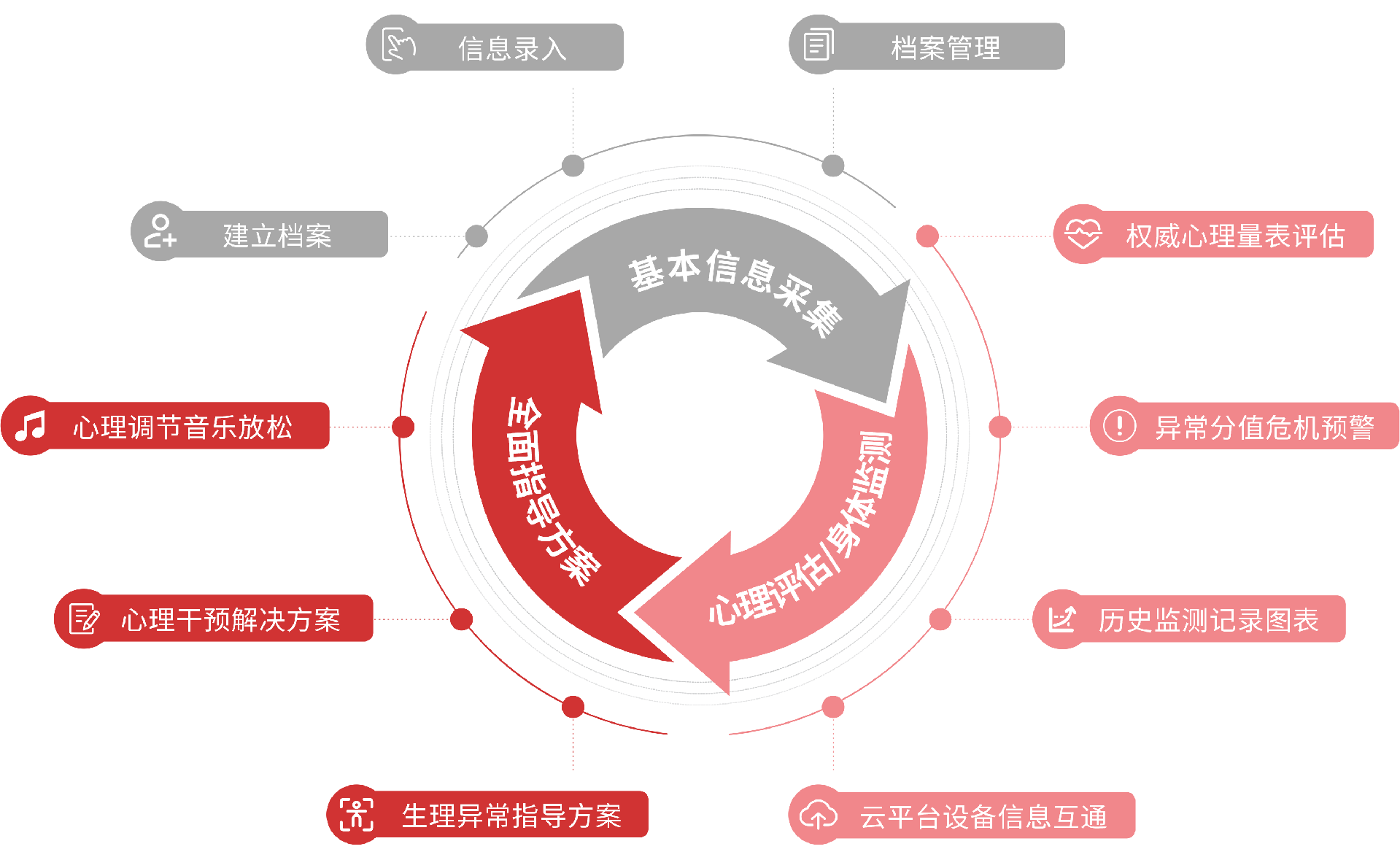 孕產(chǎn)婦心理健康中心主要解決孕產(chǎn)婦的心理及生理問題,避免因孕期身心健康不良對孕婦和胎兒造成的一系列的影響。依據(jù)現(xiàn)代醫(yī)學(xué)理論體系,將臨床醫(yī)學(xué)、心理學(xué)、婦產(chǎn)科學(xué)等與云計(jì)算和互聯(lián)網(wǎng)+完美結(jié)合,對孕產(chǎn)婦從備孕期、孕期、產(chǎn)后多個(gè)階段進(jìn)行全面的心理診斷評估,并自動(dòng)劃分為輕度預(yù)警、中度預(yù)警、重度預(yù)警等幾種類型;通過沉浸式減壓放松模式,智能一體化訓(xùn)練方案對孕產(chǎn)婦心理問題進(jìn)行綜合性干預(yù)。